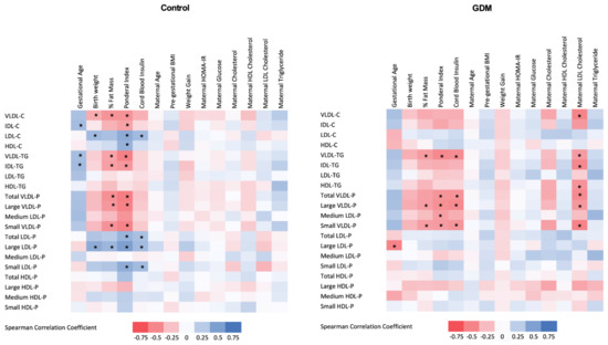 - Schaefer-Graf, U.M.; Meitzner, K.; Ortega-Senovilla, H.; Graf, K.; Vetter, K.; Abou-Dakn, M.; Herrera, E. Differences in the Implications of Maternal Lipids on Fetal Metabolism and Growth between Gestational Diabetes Mellitus and Control Pregnancies. Diabet. Med. 2011, 28, 1053–1059. [Google Scholar] [CrossRef] [PubMed]