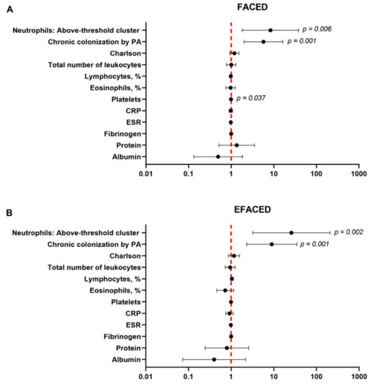- Martinez-Garcia, M.A.; Athanazio, R.A.; Girón, R.M.; Máiz-Carro, L.; de la Rosa, D.; Olveira, C.; de Gracia, J.; Vendrell, M.; Prados-Sánchez, C.; Gramblicka, G.; et al. Predicting high risk of exacerbations in bronchiectasis: The E-FACED score. Int. J. Chron. Obstruct. Pulmon. Dis. 2017, 12, 275–284. [Google Scholar] [CrossRef] [PubMed] [Green Version]