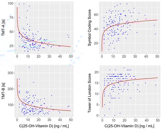 - In the first regression analysis, we assessed the impact of vitamin D on cognition. Thereto, for each of the 10 cognitive items, we separately calculated a bivariate regression model with the respective item as the dependent variable and the 25-OH-vitamin D concentration as the independent variable, yielding 10 regression models in total.