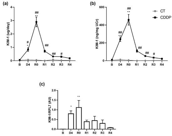 3.2. KIM-1 Urinary Excretion Remains Elevated Three Weeks after the Apparent Normalization of Renal Function