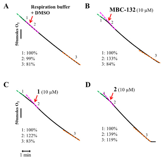 Variation in the O2 consumption rate of L. donovani promastigotes was measured in a Clark electrode (Hansatech Instruments, King’s Lynn, UK) at 1 × 108 cells/mL in 600 μL of respiration buffer (10 mM Tris-HCl, 125 mM sucrose, 65 mM KCl, 1 mM MgCl2, 2.5 mM NaH2PO4, 0.3 mM EGTA, 5 mM succinic acid; pH 7.2). Compounds were added at 100 × final concentration to whole parasites, and oxygen consumption was monitored for 8–10 min.
