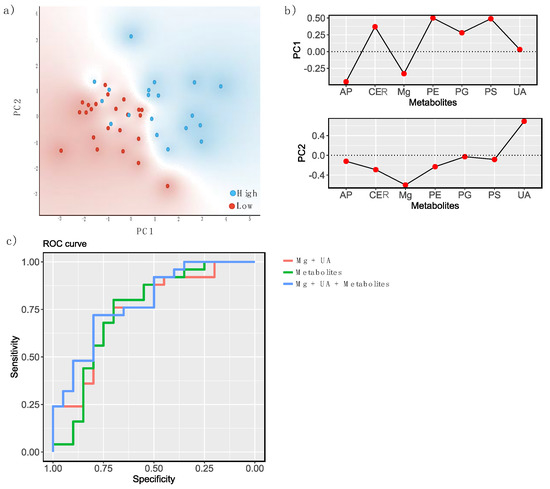 | Metabolite | High Group Mean ± SD | Low Group Mean ± SD | p-Value | AUC |