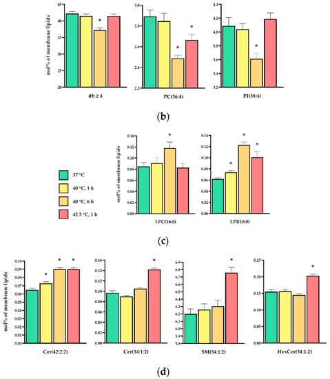 Lipid Species | 37 °C | 40 °C, 1 h | 40 °C, 6 h | 42.5 °C, 1 h |
