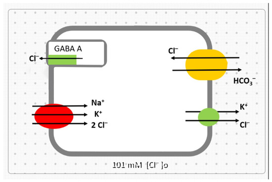 - Yamada, J.; Okabe, A.; Toyoda, H.; Kilb, W.; Luhmann, H.J.; Fukuda, A. Cl- Uptake Promoting Depolarizing GABA Actions in Immature Rat Neocortical Neurones Is Mediated by NKCC1. J. Physiol. 2004, 557, 829–841. [Google Scholar] [CrossRef]