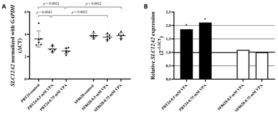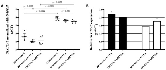 Chicago/Turabian StyleDamanskienė, Eligija, Ingrida Balnytė, Angelija Valančiūtė, Marta Marija Alonso, and Donatas Stakišaitis. 2022. "Different Effects of Valproic Acid on SLC12A2, SLC12A5 and SLC5A8 Gene Expression in Pediatric Glioblastoma Cells as an Approach to Personalised Therapy" Biomedicines 10, no. 5: 968. https://doi.org/10.3390/biomedicines10050968