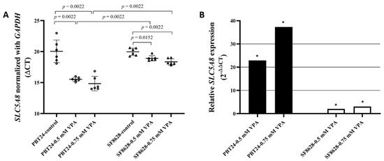 3.3. The Expression of SLC5A8 in PBT24 and SF8628 Cell Study Groups