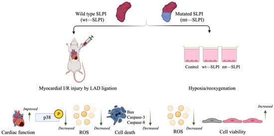 - Mongkolpathumrat, P.; Kijtawornrat, A.; Prompunt, E.; Panya, A.; Chattipakorn, N.; Barrère-Lemaire, S.; Kumphune, S. Post-Ischemic Treatment of Recombinant Human Secretory Leukocyte Protease Inhibitor (rhSLPI) Reduced Myocardial Ischemia/Reperfusion Injury. Biomedicines 2021, 9, 422. [Google Scholar] [CrossRef]