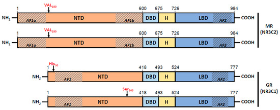 The gene coding for the MR is nuclear receptor subfamily 3 group C member 2 (NR3C2) (https://www.ncbi.nlm.nih.gov/gene/4306 (accessed on 22 May 2022)), which is located on chromosome 4 and contains 10 exons within about 450 kb.