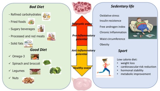 Certainly, physical activity is effective in improving antioxidant defenses. In PCOS women, a 12-week aerobic training has proved to increase superoxide dismutase (SOD) and the total antioxidant capacity, and reduce MDA and AMH [163].