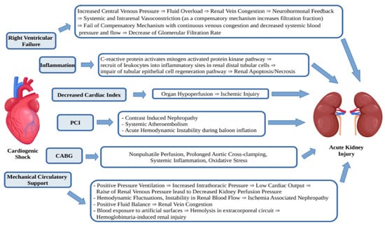 - Singh, S.; Kanwar, A.; Sundaragiri, P.; Cheungpasitporn, W.; Truesdell, A.; Rab, S.; Singh, M.; Vallabhajosyula, S. Acute Kidney Injury in Cardiogenic Shock: An Updated Narrative Review. J. Cardiovasc. Dev. Dis. 2021, 28, 88. [Google Scholar] [CrossRef] [PubMed]