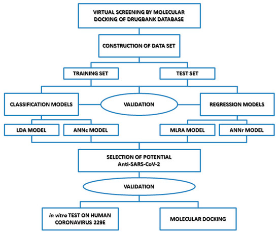 To identify potential drugs with anti-Mpro activity, four computational models based on different statistical techniques were developed including linear discriminant analysis (LDA), multilinear regression analysis (MLR), and artificial neural network (ANN) models for classification and regression analyses.