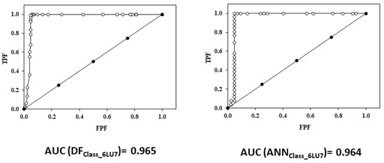 ROC curve for DFClass_6LU7 and ANNClass_6LU7. TPF: true positive fraction; FPF: false positive fraction.