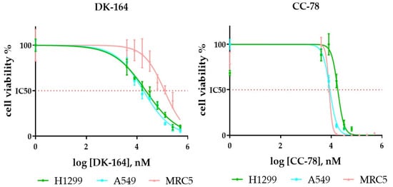 3.3. In Vitro Evaluation of DK-164 and CC-78 Cytotoxicity