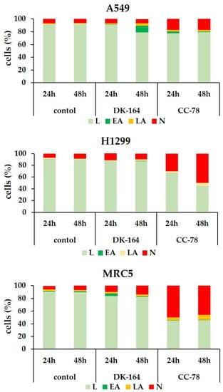 3.4. Study of Apoptosis in Lung Cells Treated with DK-164 and CC-78