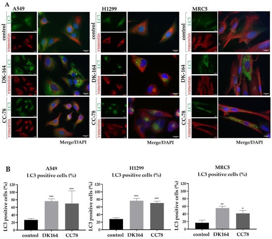 3.5. Autophagy in Lung Cells Induced by Treatment with DK-164 and CC-78