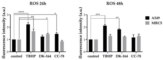 3.7. Activation of Reactive Oxygen Species (ROS) in Lung Cancer Cells by DK-164, CC-78