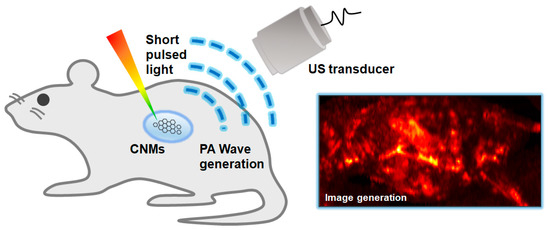 CNSs have several advantages in being employed as PAI probes compared to G nanosheets, CNTs, and other kinds of CNMs [172,173,174]. CNSs are intrinsically biocompatible due to their hydrophilic surface; there is no need for additional surface treatments. Moreover, the sphere shapes of CNSs are beneficial for the treatment of solid tumors with a homogeneous existence in the margin.