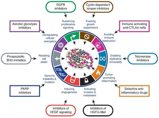 - Hanahan, D.; Weinberg, R.A. The Hallmarks of Cancer. Cell 2000, 100, 57–70. [Google Scholar] [CrossRef] [Green Version]