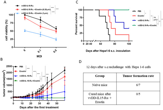 3.3. The Therapeutic Effects of Erastin, OV, or Their Combination on Hepatoma and Colon Cancer Models in Syngeneic Mice