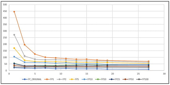 In order to choose the final balanced training set, (), 10 different - with (each of them obtained for a different ) were 10-fold cross-validated, and the for which the - had the highest Matthews Correlation Coefficient () (Table 2) was selected. The , that is, the correlation coefficient between the observed and predicted binary classifications, was fixed, because several authors [43,44,45] have pointed out that in the case of unbalanced datasets, the is the best choice for the selection of the classifier. Table 5 reports the values of the of the selected training sets. In particular, for each , its maximum values are shown.