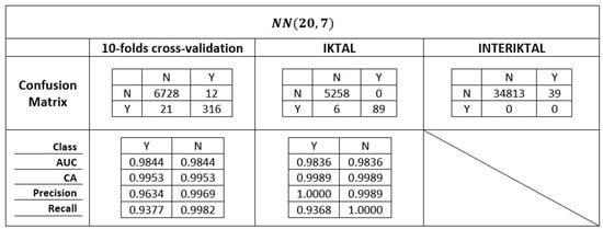 In our case study, the partitioning of the hold-out method was carried out by considering the different phases of the EEG signal. Table 4 shows the list of the datasets used in our analysis useful to select the best -. Testing the models on the IKTAL and INTERIKTAL sets allowed us to select the best performing classifiers with respect to the detection of seizures and the reduction in false alarms (false positives).