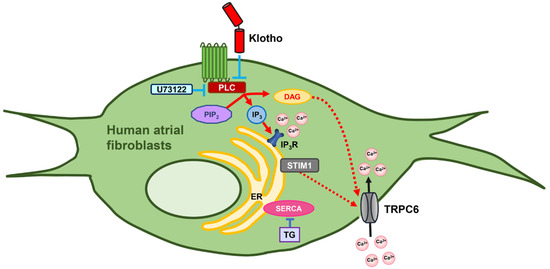 - Klotho inhibited the PLC pathway and decreased thapsigargin-induced ER Ca2+ release and SOCE in human atrial fibroblasts.