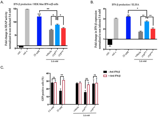 Surprisingly, although it was not associated with ZIKV inhibition, we observed a moderate IFN-β production in vehicle and rVPmut transfected cells, which has to be related to the lipofectamine effect reported by Guo et al. [40]. Thus, further works are needed to better understand the induction pathways in these conditions.
