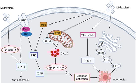 Schematic illustration of midazolam-induced apoptotic signaling in cancer cells. The figure is made by an online tool at BioRender.com (accessed on 14 June 2022).