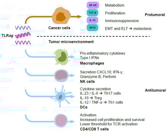 3. Role of Endosomal TLRs on Tumor Cells and the Tumor Microenvironment