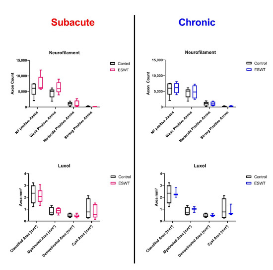 These findings, in conjunction with our own data, could provide insight into possible underlying mechanisms leading to observed functional recovery after SCI and ESWT treatment at subacute and chronic timepoints post-injury.