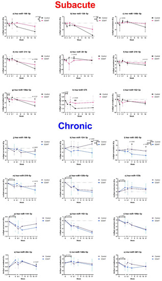 3.4.1. Several Identified miRNAs Showed Potential Therapeutic Relevance in Either Subacute or Chronic Experimental Setting