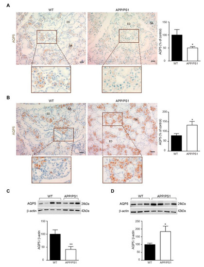Differentially Aquaporin 5 Expression in Submandibular Glands and Cerebral Cortex in Alzheimer’s Disease