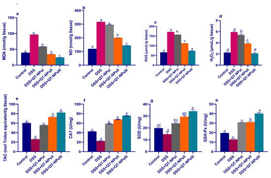 APA StyleKhater, S. I., Lotfy, M. M., Alandiyjany, M. N., Alqahtani, L. S., Zaglool, A. W., Althobaiti, F., Ismail, T. A., Soliman, M. M., Saad, S., & Ibrahim, D. (2022). Therapeutic Potential of Quercetin Loaded Nanoparticles: Novel Insights in Alleviating Colitis in an Experimental DSS Induced Colitis Model. Biomedicines, 10(7), 1654. https://doi.org/10.3390/biomedicines10071654