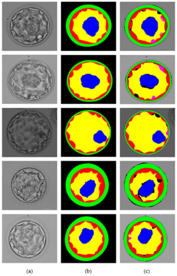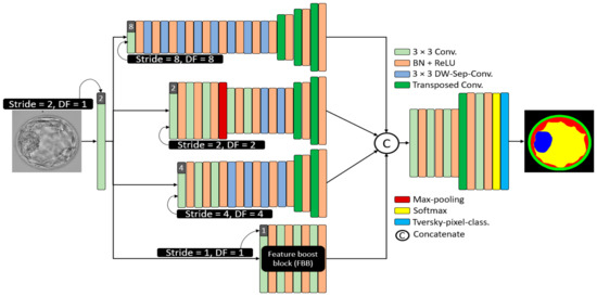- Rad, R.M.; Saeedi, P.; Au, J.; Havelock, J. BLAST-NET: Semantic Segmentation of Human Blastocyst Components via Cascaded Atrous Pyramid and Dense Progressive Upsampling. In Proceedings of the IEEE International Conference on Image Processing, Taipei, Taiwan, 22–25 September 2019; pp. 1865–1869. [Google Scholar]