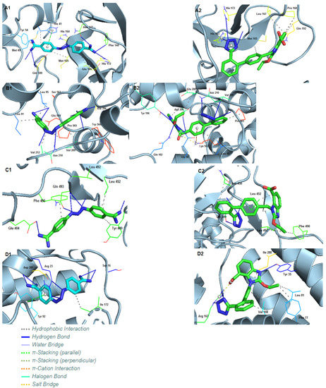 - Salentin, S.; Schreiber, S.; Haupt, V.J.; Adasme, M.F.; Schroeder, M. PLIP: Fully automated protein–ligand interaction profiler. Nucleic Acids Res. 2015, 43, W443–W447. [Google Scholar] [CrossRef] [PubMed]