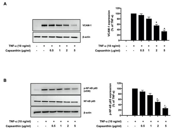 Kim S, Lee Y-R, Lee E-O, Jin H, Choi Y-H, Joo H-K, Jeon B-H. Capsanthin Inhibits Atherosclerotic Plaque Formation and Vascular Inflammation in ApoE−/− Mice. Biomedicines. 2022; 10(8):1780. https://doi.org/10.3390/biomedicines10081780