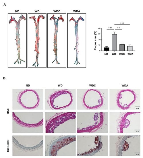 - Mohanta, S.; Yin, C.; Weber, C.; Hu, D.; Habenicht, A.J. Aorta Atherosclerosis Lesion Analysis in Hyperlipidemic Mice. Biol. Protocol. 2016, 6, e1833. [Google Scholar] [CrossRef] [PubMed]