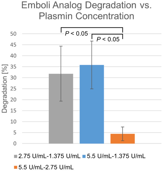 Differences in membrane-perfusion-delivered plasmin degradation at varying concentrations. Percentage shown as mean ± standard deviation (n = 6).