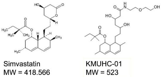 Structural formula and molecular weight (MW) of KMUHC-01 and simvastatin.