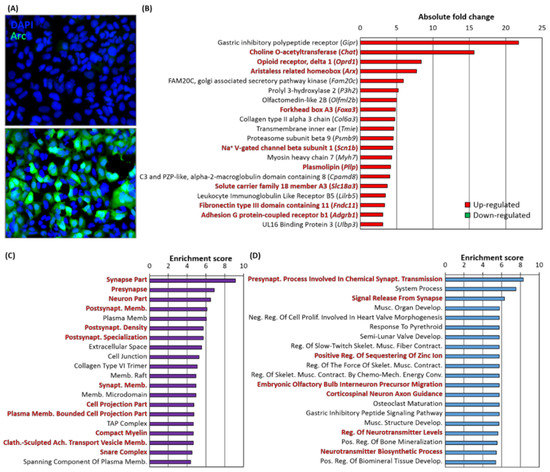3.7. Arc Regulates Expression of Synaptic and Plasticity Genes