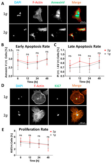 3.6. Proliferation and Apoptosis Rates Are Not Affected by Hypergravity