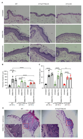 3.6. Mutation of T779A of Il17ra and Knockout of Il17rc Prevent the Development of Skin Papilloma