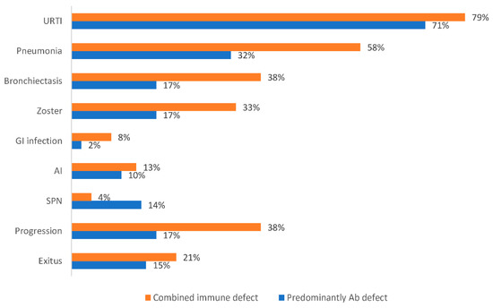 Proportion of clinical manifestations according to the immune defect phenotype.