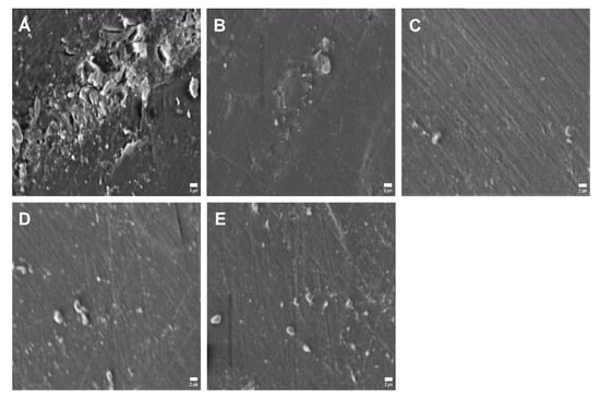Denture stomatitis is an oral disease that arises due to poor denture hygiene and is generally caused by C. albicans. Chlorhexidine (CHX) has been used as a disinfectant agent to diminish the adhesion of C. albicans on the denture-based resins []. CHX is a biguanide disinfectant [] that is frequently used in dentistry as an antiseptic oral rinse, mouthwash. CHX has shown a high fungicidal effect and can be used as a topical antifungal agent. However, the proper use of CHX for clinical and dental purposes is important and should be specifically used [,].