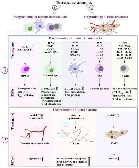Spunde, K.; Korotkaja, K.; Zajakina, A. Recombinant Viral Vectors for Therapeutic Programming of Tumour Microenvironment: Advantages and Limitations. Biomedicines 2022, 10, 2142. https://doi.org/10.3390/biomedicines10092142