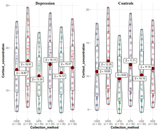 Early detection of depression is crucial because only an early diagnosis can provide long-term symptom alleviation [34]. As a result, strategies for identifying the illness in the early stages are badly needed [35,36]. Six saliva collection methods were employed in this study on 30 healthy controls and 30 depressed patients in the morning to determine the ideal saliva collection method. The saliva cortisol levels of these participants were measured using an enzyme-linked immunosorbent assay. We needed to be able to detect saliva cortisol levels using a simple and reliable method. This study also found that the effectiveness of saliva as a diagnostic biological fluid was dependent on the consistency of collection procedures in order to deliver the most accurate and helpful results. The methods used to collect saliva have a considerable impact on cortisol levels and correlation. As a result, standardizing a saliva collection process is crucial for mitigating the impact of variability in saliva composition within and between individuals.