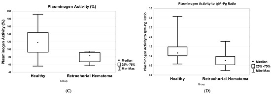 Tikhonova, N.B.; Kuznetsova, N.B.; Milovanov, A.P.; Goufman, E.I.; Fokina, T.V.; Aleksankin, A.P.; Aleksankina, V.V.; Stepanova, I.I.; Stepanov, A.A.; Boltovskaya, M.N.; et al. Hemostasis System and Plasminogen Activity in Retrochorial Hematoma in the First Trimester of Pregnancy. Biomedicines 2022, 10, 2284. https://doi.org/10.3390/biomedicines10092284
