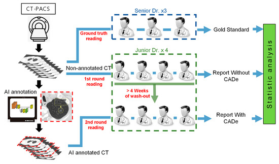 After the Ground Truth was established for the CT image of each subject, the samples were randomly sorted and provided to the clinical readers for identification and marking. All four junior doctors were trained to achieve maximum consistency in interpretation before trial initiation.
