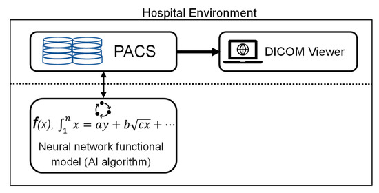 AI algorithm embedded in the PACS infrastructure of the hospital. AI: artificial intelligence; DICOM, digital imaging and communications in medicine; PACS, picture archiving and communication system.
