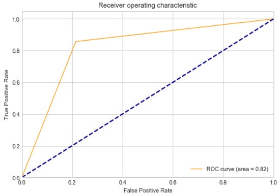 ROC curve comparing the True Positive Rate and False Positive Rate with the value of 0.82.